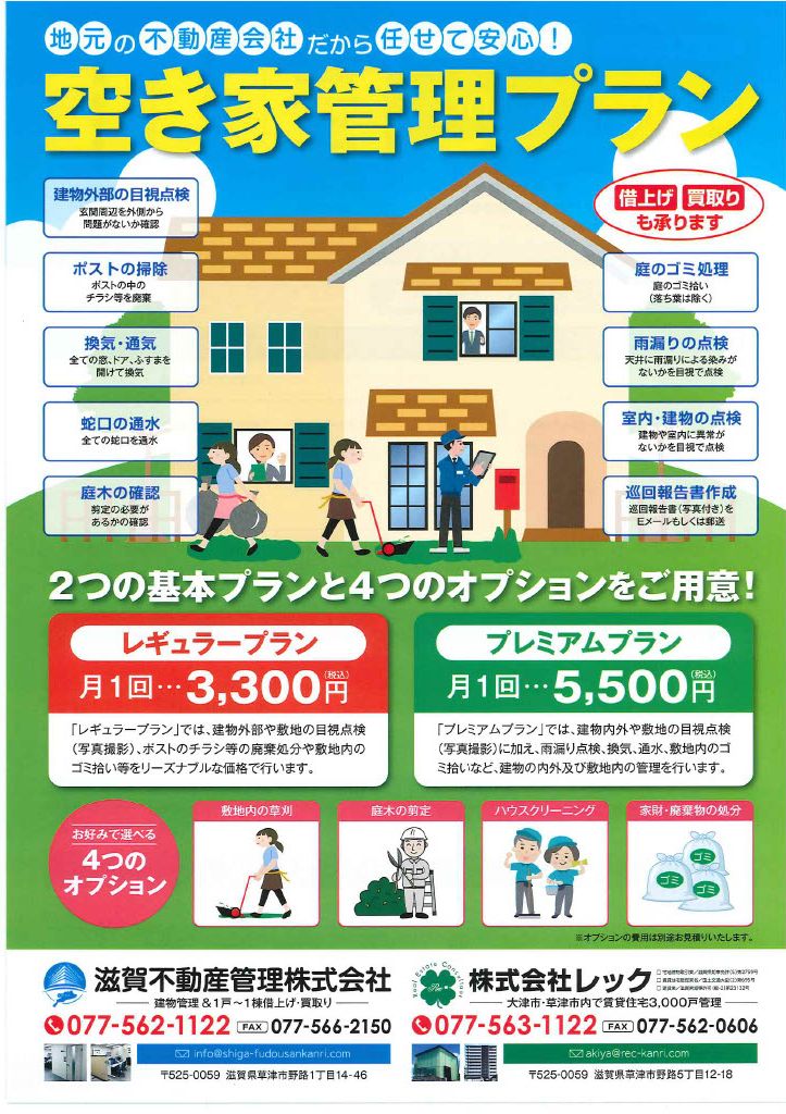 3. 滋賀県内の空き家を低管理料で管理させていただきます!
