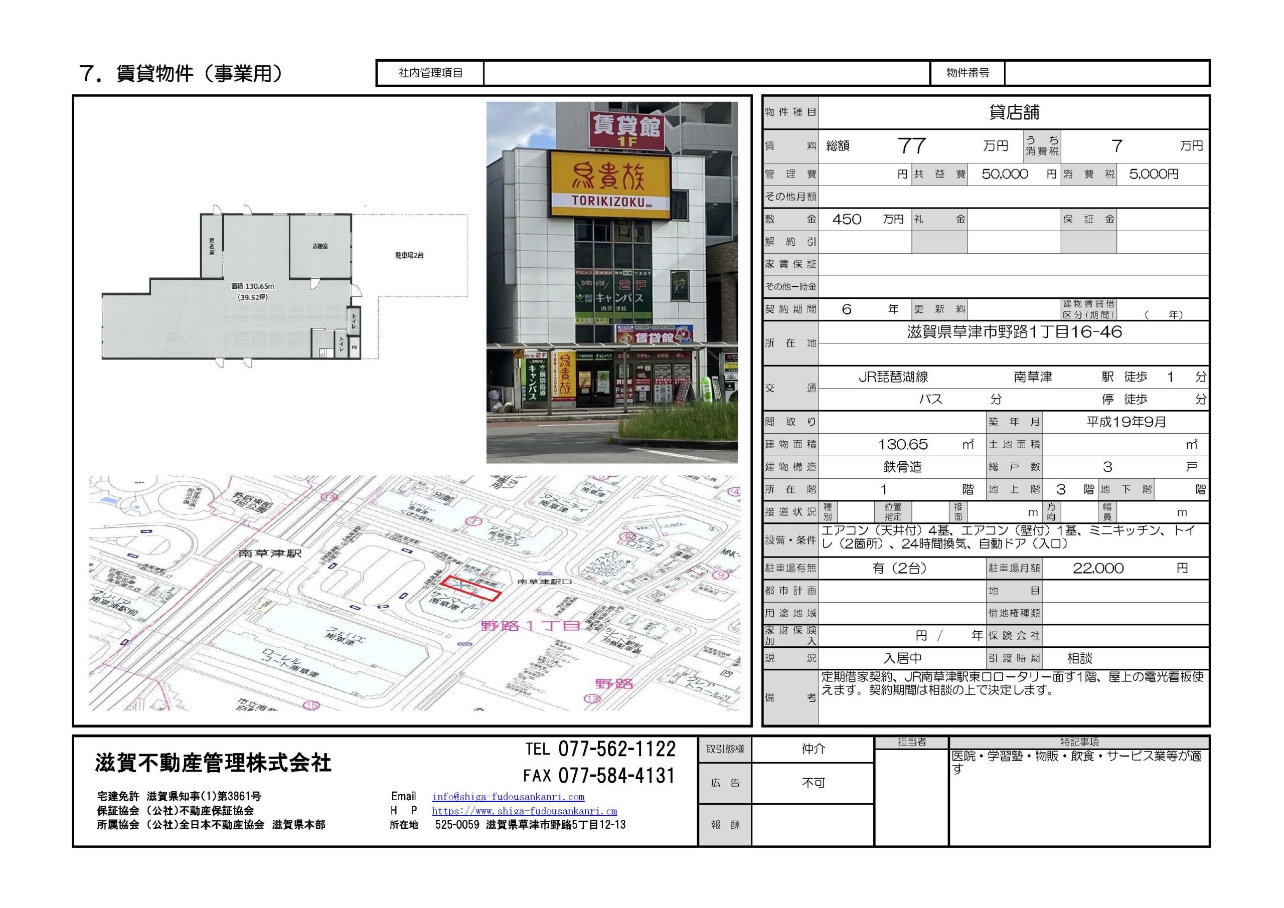 貸店舗募集!(39.52坪)/JR南草津駅東口ロータリー面す1階